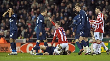 Referee Peter Walton initially appeared reluctant to punish the Potters ace, as the tackle lacked malice.