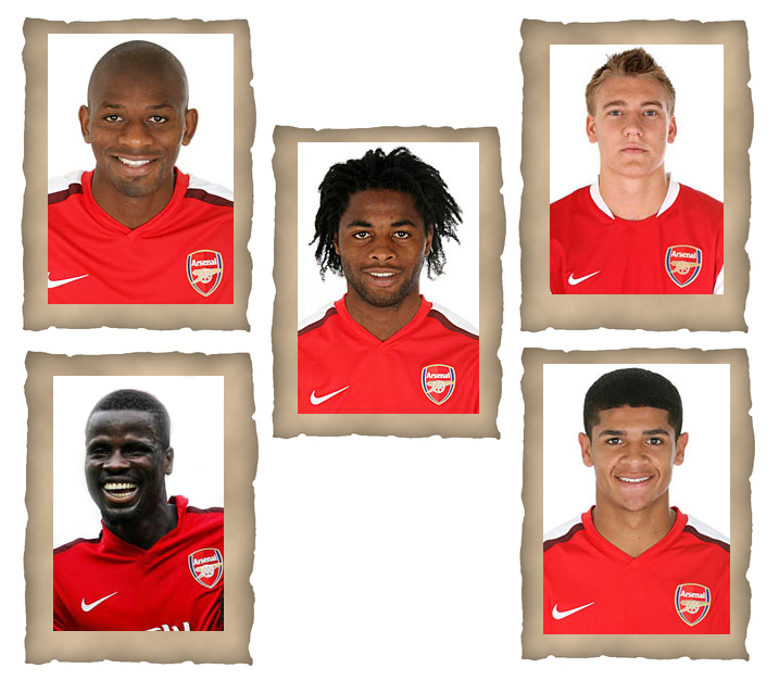Alex Song: made his debut in September 2005, scored his first goal against pool in January 2007; later that month he went out on loan to Charlton Athletic until the end of the 2006/2007season. From 2008 onwards he has featured in the Carling Cup and been integrated into the first team. He is now first choice holding midfielder. This player has probably caused more disagreement amongst fans than any other, but the quality and consistency of his performances this season have won over even his harshest critics.