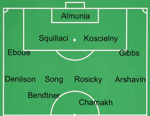 To qualify my previous comment, I would ceratinly make early substitutions if we are comfortable in any game, and I would include Diaby, Bendtner and Chamakh in the ‘first team’ category if they are in good form.