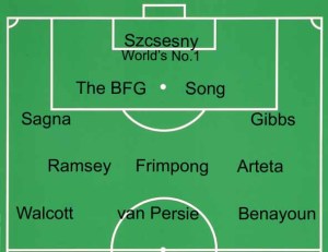 Yes I know – it is not really a 4-3-3 but I believe we should pack our midfield reducing the potency of their pace and rely upon Theo to take advantage of the space created further forward. Plus it would be good to start Benayoun at what should be his home ground 😉 We can bring on Gervinho in the unlikely event of our being behind in the final 20 minutes.