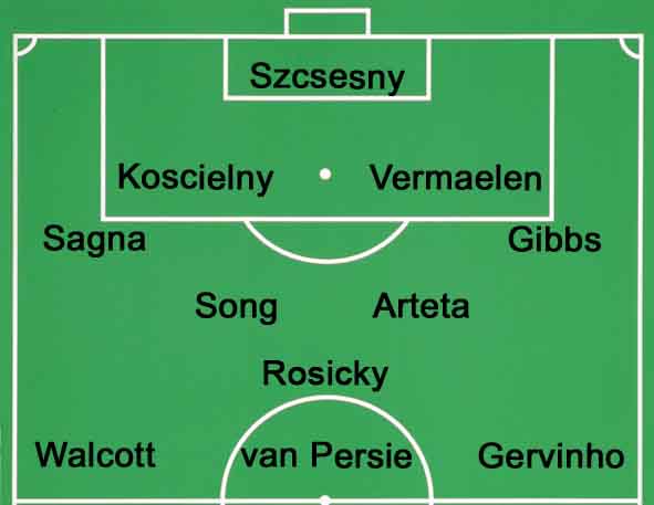 Andre Santos has returned to full training but bearing in mind he hasn’t played in four months it is likely he will be coming on with a few minutes left (when we have control of the match). Arteta returns from a heavy concussion and it should see him slot in alongside Song in central midfield. Ramsey is back from an ankle injury but with Rosicky’s scintillating form he won’t make the starting line-up. Benayoun could return from the virus that ruled him out of the squad for the Champion’s League match. Still in the treatment room are the BFG (ankle), Coquelin (hamstring), Diaby (Hamstring), Frimpong (knee), Squillanci (groin), and Wilshere (ankle). For me the starting line-up is as follows: