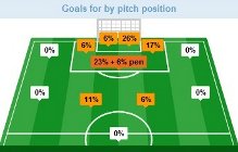 The Senegalese striker Ba has been a revelation for Newcastle this season. He scored 7 goals in 11 games for West Ham before he arrived at Newcastle on a free transfer, what a deal that has become. Ba is robust in the air, has a good poacher’s instinct, swift on the turn and has a high work rate that has brought about 16 goals in 23 matches this season. Arriving in the January transfer window, Cisse has shown a keen eye for goal with 2 goals in four matches, and scoring 9 goals in 17 matches while playing in the Bundesliga. Both possess predatory instincts close to goal so it is imperative that we give them no room inside the box or they could make us pay. Their poaching ability can be seen in the picture below which highlights a large portion of their goals coming very close to goal, whereas our goals are spread around the area and further from goal. It also shows Newcastle like to have shots from outside the area, while we do not.