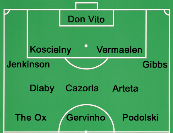 I agree with you on the line-ups, though I was also wondering about Ramsey as an alternative to Diaby. But Diaby’s the one in the end. And if we need to firm things up during the game, we could put Poldi up top, and bring Gerv off for Santos, who could play left midfield.