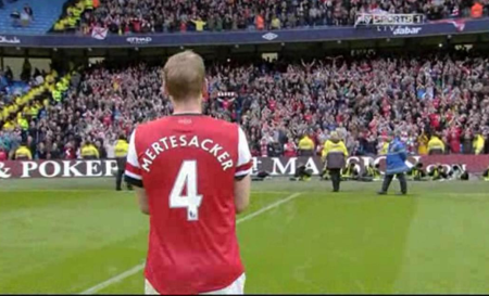 The Away Boys were magnificent as usual keeping a rendition of Money don’t buy History going throughout the game  and they warmly applauded the whole team off the pitch including my Man of the Match, Per Mertesacker.