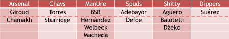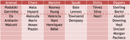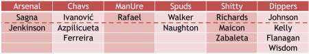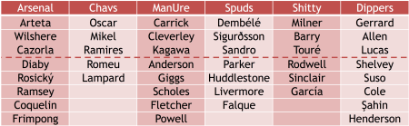 Obviously the split between midfielders and forwards is subjective but if we assume everyone uses a 4-3-3 of sorts this was the best way to split up the squads.