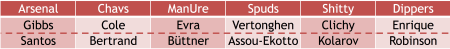 Compared to the other teams I do not think the depth looks that bad, however here is where the obvious issue of injury raises its ugly but familiar head, presently without Diaby and Rosicky, but we can arguably cope with two injuries in this area of the pitch. Look at Chelsea and I’m not sure you could say the same, United would end up fielding Giggs and Scholes week in week out. City, Spurs and Liverpool all have inexperienced players in waiting that I am not sure their managers would like to utilise regularly.