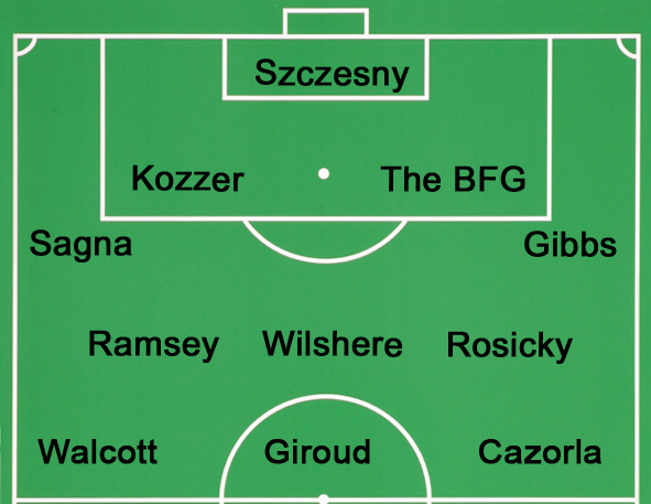 Jenkinson plays in place of Sagna. Flamini and Gnabry on the bench