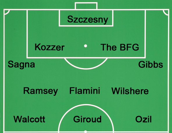 Team in full: Szczesny, Sagna, Mertesacker, Koscielny, Gibbs, Flamini, Ramsey, Wilshere, Ozil, Walcott, Giroud.