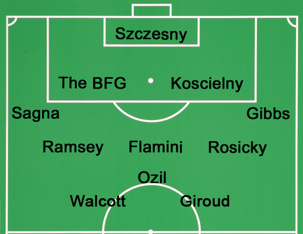 But, the team could equally include Rosicky (who has been fantastic) Wilshere and Cazorla! The return of Theo to the team will give us more Thrust.
