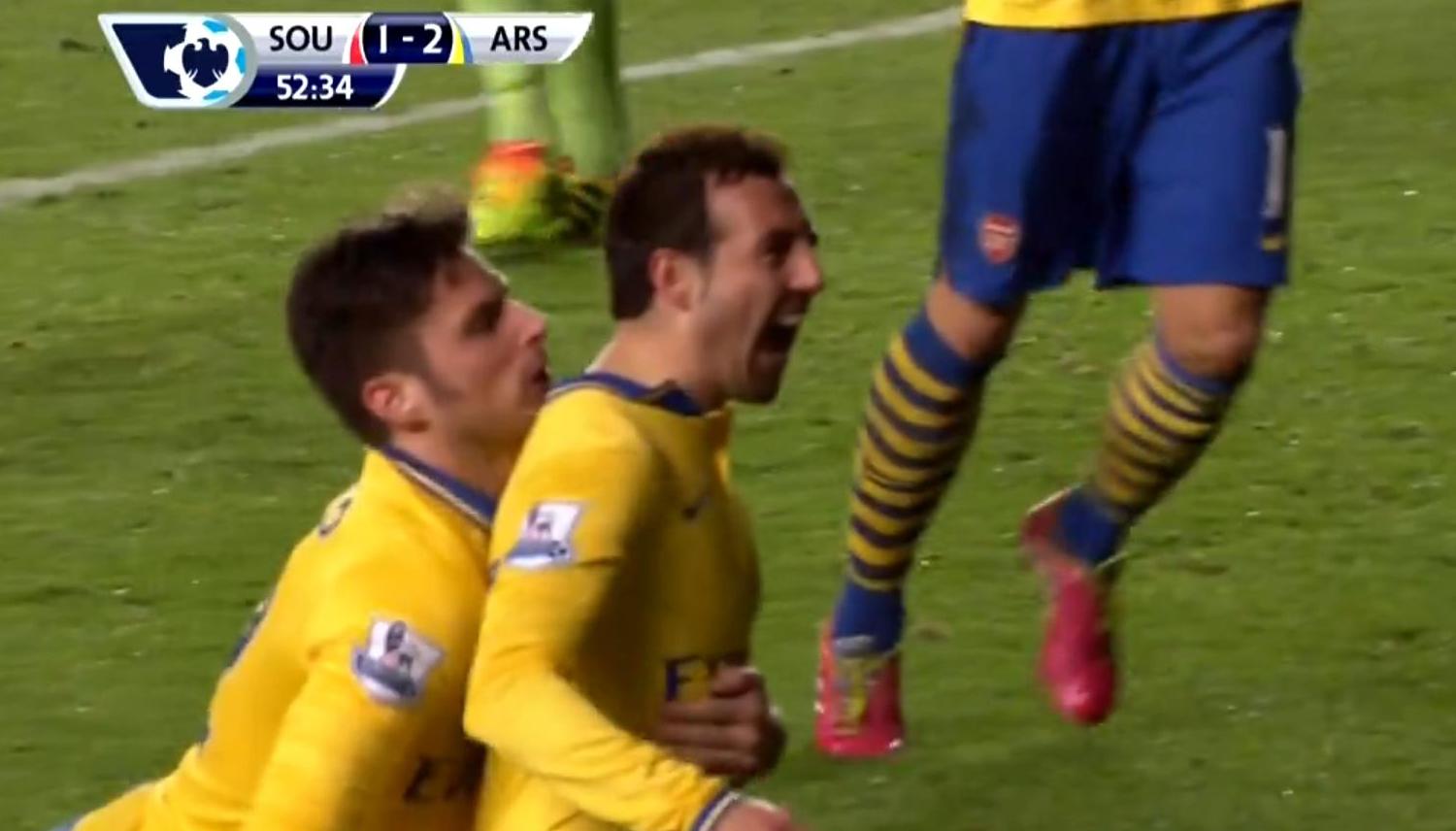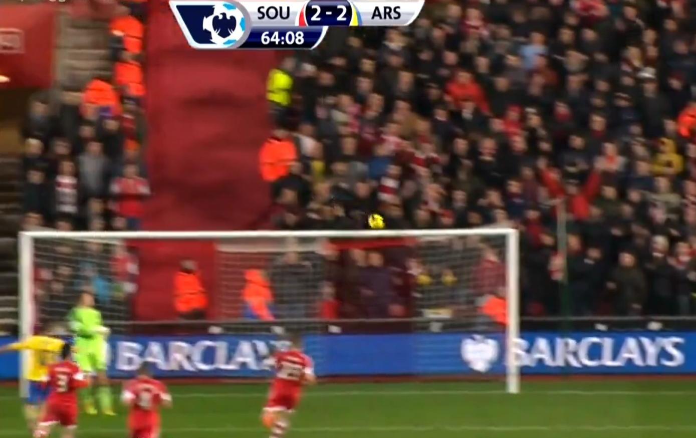 Suddenly Arsenal looked as if they might be the top of the table side that had come to St Mary’s for 3 points. Mesut pulled the ball back across the edge of the area and Cazorla sliced it, with the precision of Nigella using a credit card, beyond Boruc’s right hand. Two one up and the away supporters wondered what they had been worrying about at half time.