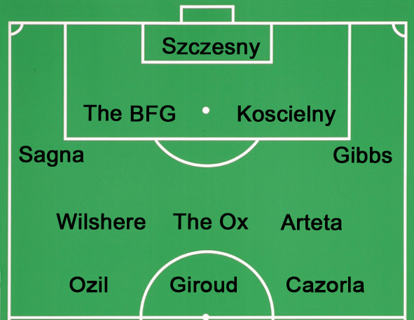 Personally I would have Tomáš Rockin’ Rosický in place of Arteta and maybe Podolski given a rare start so Özzy can come on later, although not necessarily as late as 65 minutes.