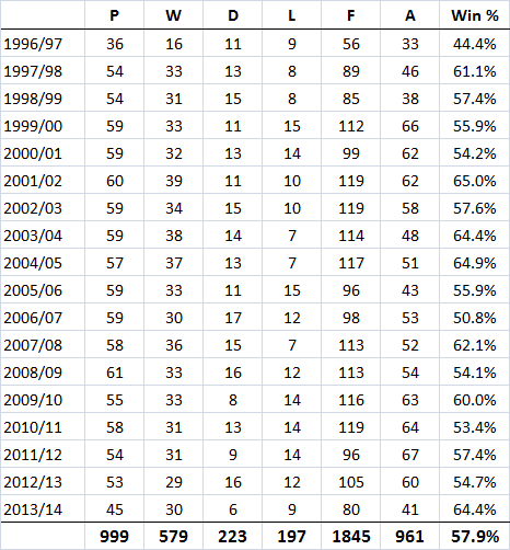 NB: That’s the type of League table that I like, no Manchester United, Manchester City or Tottenham Hotspur anywhere to be seen – those were the days my friends………