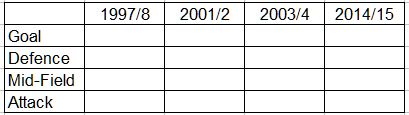 I’m going for GKs, Defence and Attack 2001/2 and Midfield from 2003/4.