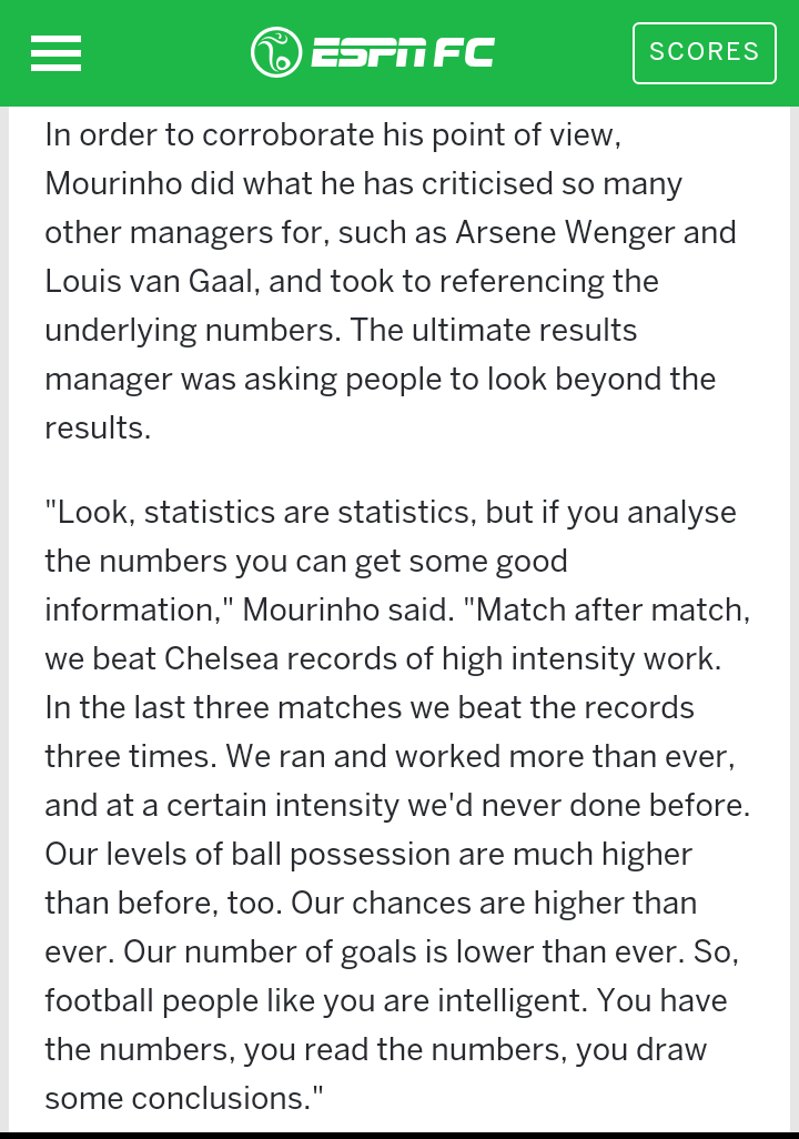 As for the PL. Why do people keep saying it’s a weak league or that we can win it by default? The fact that there are no runaway leaders is because the league is stronger than it’s ever been. We’re near the top despite a slow start and injuries because we had great strength in depth at the start of the season, and because Cech has been brilliant(with the exception of the first game) not because city are doing us any favours.