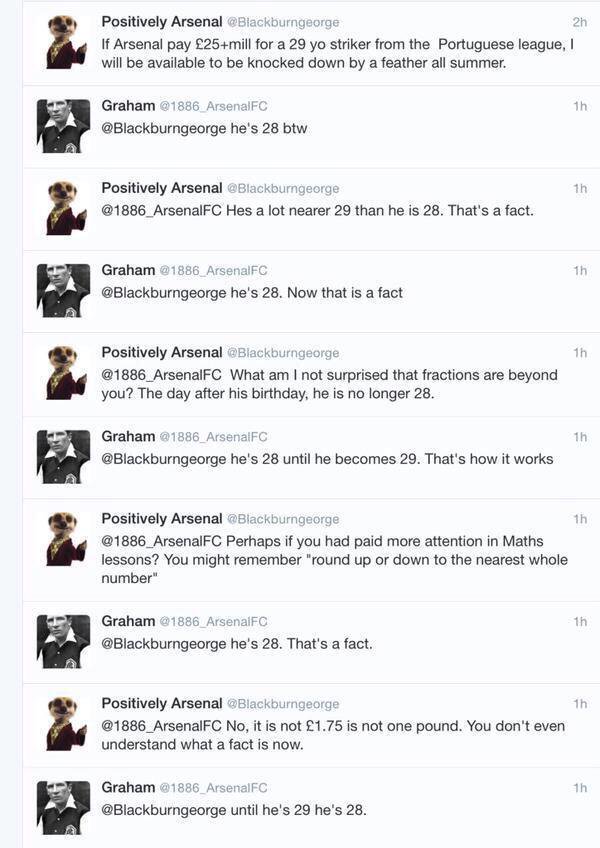 He phones about a great player who is looking for a move, ticks all the boxes, all great. How much? £xx millions? Wenger hangs up.