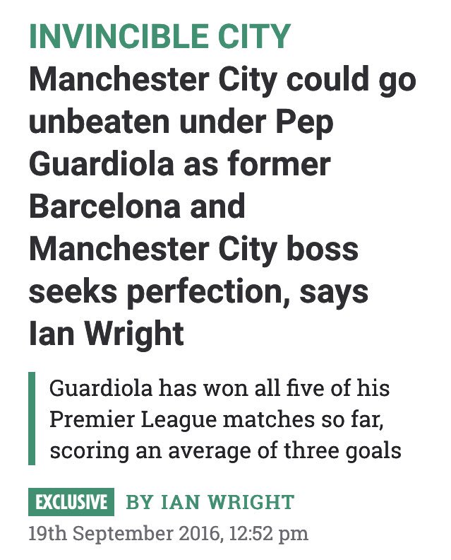 Back to the other smaller game, I am going to go out on a limb here and say that as things turned out the spud win was a useful result for us. Perfect Pep needed to have some of that wind taken out of his sails, this leaves just spuds as the only unbeaten team in the league and continuing the metaphors I think we all know who has a sharp pin just ready and waiting to burst that little blue and white bubble.