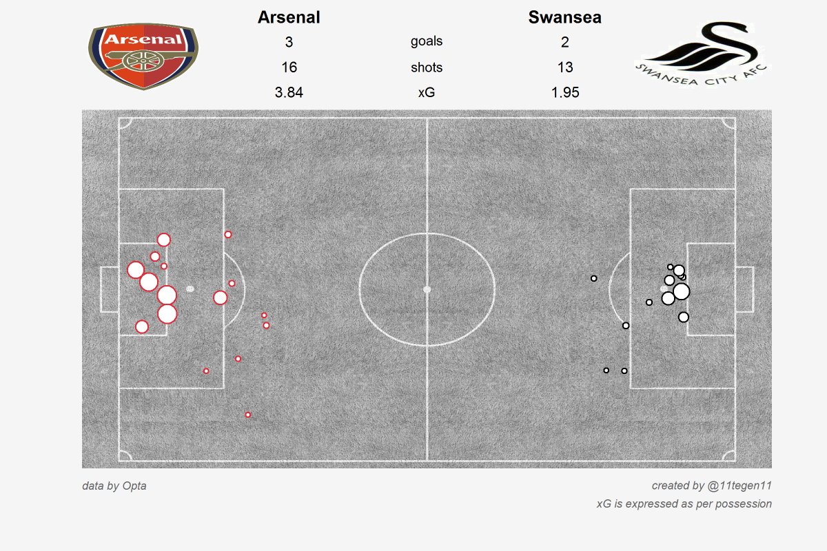 The Bellerin header across the goal for the Theo’s first is a possible, as putting the ball into the danger zone flustered the Swans’ defender enough to miscontrol.