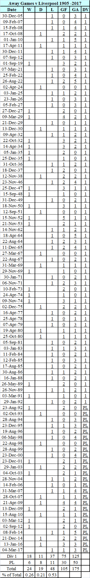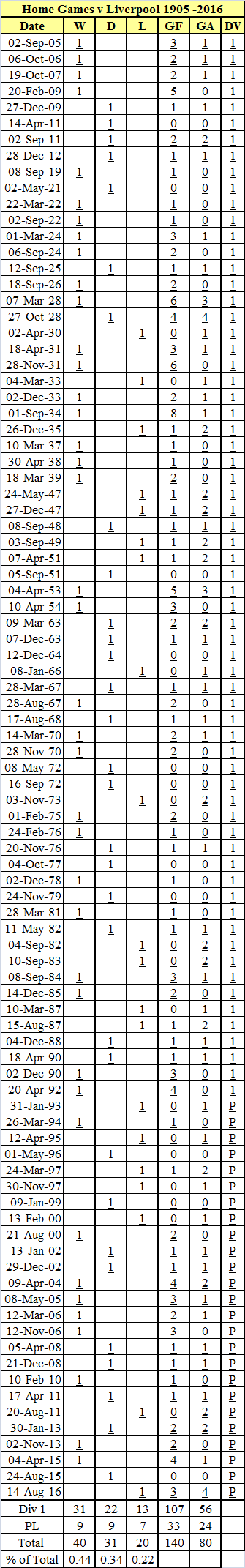 Overall Liverpool has the edge over us – but as you can see below after playing 182 league games against each other there is a difference of a mere 4 games.