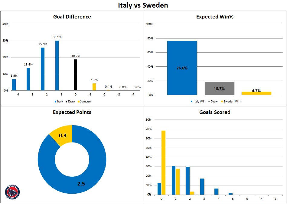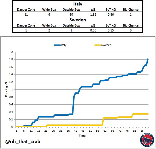 Two different versions of xG calcs for the Italy v Sweden game………..