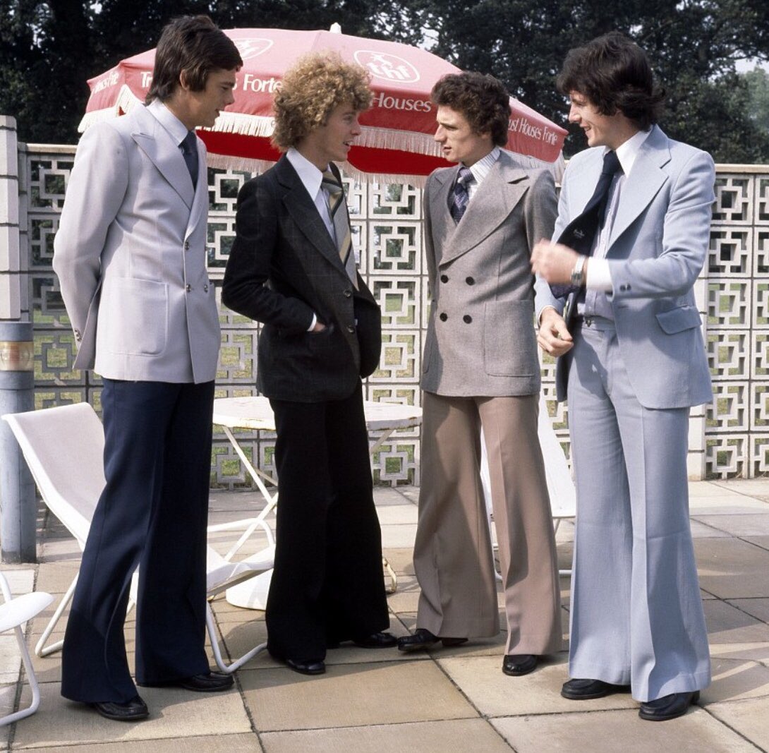 We all had suits like that. I had one in green velvet – I was married in it and thought I looked the dogs bananas. Add in a huge collar shirt with a kipper tie and life was kushtie.