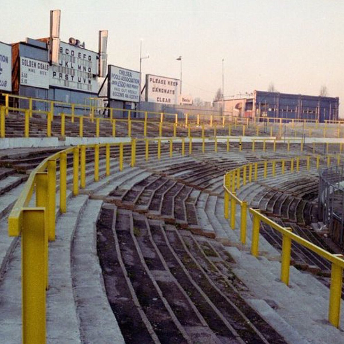 I would guess Stamford Bridge but the yellow railing raise some doubts. Brentford?