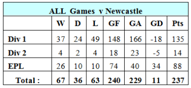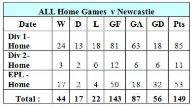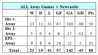 Ha ha. Just checked me facts. Newcastle have so far accumulated a grand points total of……..drum roll……one 🙂 🙂
