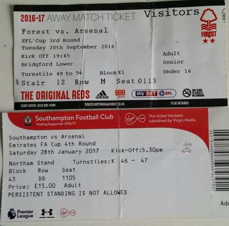 Returning to Arsenal, in September 2016 he featured at right back at the City Ground in the EFL cup and we cruised to a 4-0 victory (a game I was lucky enough to be at). His next start the following January was in an FA Cup 4th round match at Southampton where he played in central midfield (we won 5-0 and, again, I was there for another belting away trip 🙂 ).