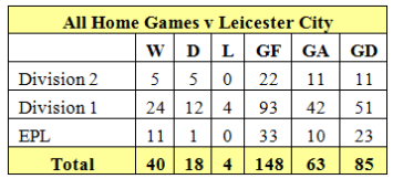 Our last home loss was on September 8th 1973 (45 years ago) overall we have only lost 6.5% of our home games and have never lost to the Foxes in the EPL era.