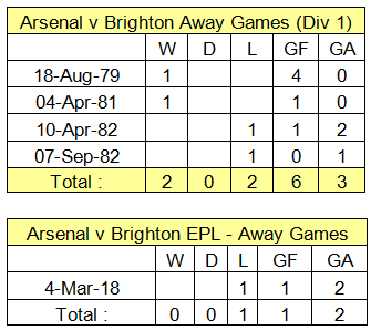 In league play we have only met Brighton on ten occasions, eight in Division 1 and two in the EPL.
