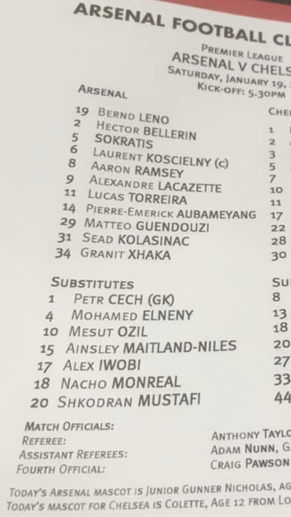 How about we cheer ourselves up in the knowledge that the squad is returning to good health with only Welbz and Holding on the long-term injured list. Emery can pick a solid defence – or as good as he can with the tools available, not that I wish to call Mustafi a tool, but if the cap fits …