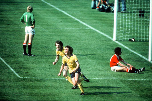 Then everything went mammaries up. In the 86th minute Steve Coppell slung a free-kick across the Arsenal penalty area, Joe Jordan sent it back into the middle, and Gordon McQueen poked the ball home. And just two minutes later, Sammy McIlroy danced past two stumbling defenders and slipped the ball underneath Pat Jennings.
