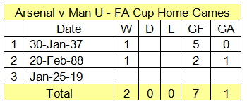 GN5/Chas, fantastic in-depth post about our FA heroics v the Mancs. So the two teams that won the FA Cup most only played each other ten times? Especially in January it seems key to play at home, so we should be pleased the game is at the home at football rather than at old toilet (and only for the third time in history from your stats!).