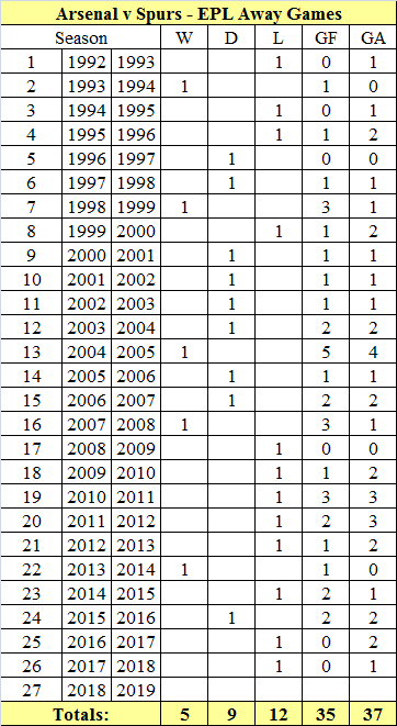 It seems Wengers years were summed up pretty well by our results at the Lane. 1 loss in 12 seasons followed by 1 win and 1 draw in the next 10 years.