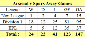 Our first (WHL) League Championship was in a 1-0 victory on May 3rd 1971. We went on to beat Liverpool 2-1 at Wembley to claim our first League and FA Cup double. The second came on April 25th 2004 when we drew 2-2 in our Invincible season. Two incredible seasons for Arsenal and total misery for Spurs knowing they could have been the spoilers. To rub a little more salt in their wounds, we have won the FA Cup on eight occasions since their last win in 1990/91.