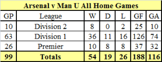 Historically this Sunday’s game is our 100th home league game against Manchester United and a little known fact is that United has lost more away games against Arsenal (54) than they have to any other Football League club – long may it last!