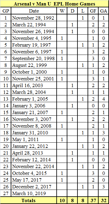 What is interesting is the recent history. Since 2013 the Mancs have not won the league anymore and that is starting to be a long period now (it will take till at least 2020 before they can be winners again). They won an FA Cup, Charity Shield and UEFA Cup in that period, which is not bad but not great either, especially if you look back to their successes between the previous seven years (2006-2013). Arsenal decided to build Ashburton Grove in order to compete with the Mancs and you can say that they did not do much better than us in the previous six years, if better at all. Both teams need to do better going forward and now have to compete with four other big clubs for the few bits of silverware available. it is not going to get easier and it feels that if we can finish above the Mancs this season it would give us a real boost. A draw would be ok but a win would very sweet indeed. It will be hard without Torreira in midfield, and I am hoping that Elneny will get his place tomorrow.