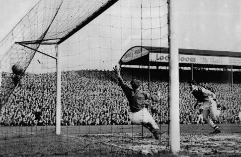 The following clip shows David Herd scoring his first goal at Highbury. It just about shows his second as well as Arsenal beat Sunderland 3-1 in February 1956. (Jimmy Bloomfield’s goal is a cracker). The film quality is appalling as is the frozen pitch but the clip is worth watching.