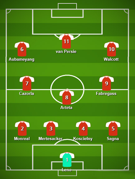 Bench: PiG, Bellerin, Monreal, Cesc, Song, Walcott, OG