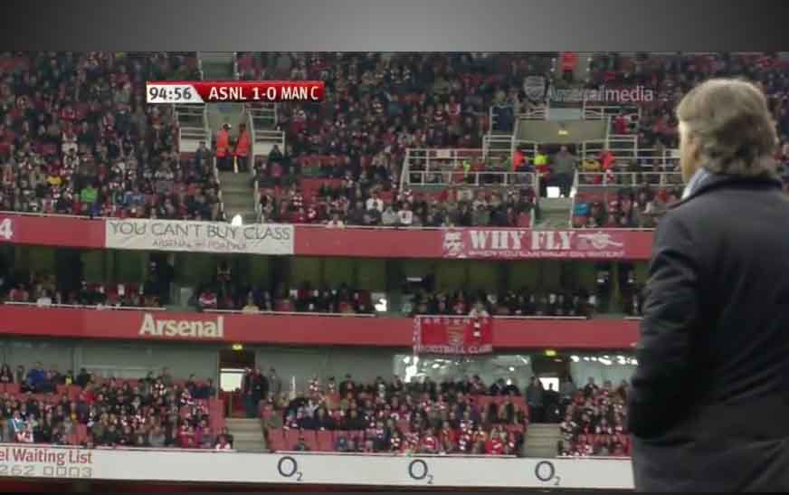 From the first minute it became clear Arsenal were up for this game. During the first quarter of the game, Arsenal enjoyed 78% possession, leaving Citeh with nothing else to do than chase the ball and set up a fortress around their box. This must have been hard for Citeh, as it’s usually them who keep the ball, and pass it around, better than their opponents. Recently, Arsenal have been a little bit lob-sided towards our right, but we were constantly able to switch our attacking play from side to side in the first half. Although we threatened a lot with our energetic and innovative attacking moves, we did not manage a clear attempt on goal until the 16th minute. RvP made a perfect connection with his head to Arteta’s corner-kick, but his effort hit the back of Vermaelen’s head, whose own run had taken him to just under the Citeh’s crossbar. RvP was just so unlucky not to score.