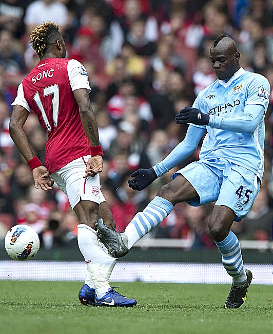 During the rest of the first half there were no more clear attempts on goal, as Arsenal dropped off a bit and MC were able to regain some possession, albeit without threatening our goal themselves. Balotelli was keen to grab all the attention with another petulant performance, and he should have seen a straight red card for his nasty, studs-up challenge on Song. The referee appeared not to have seen the incident, so the Italian got away with it. Luckily, Alex somehow survived the charge. After that incident, Balotelli fouls our RB, Sagna, twice, and he finally gets a yellow card. He should have had a second one for a handball before the end of the first half, but once again, he got away with it.