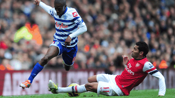 What has brought on this fear of Santos that some would prefer to play right footed players in the left back position? Some accuse the Brazilian of being guilty of playing Holt onside enabling him to score and cause our embarrassing defeat against Norwich. Some accuse him of being culpable for the Schalke’s first and many around me at the Emirates screamed with anger as Macke for QPR with only five minutes to go came down the left at speed cut inside of Santos and created a one on one with Mannone who fortunately not only saved the shot but saved the three points.
