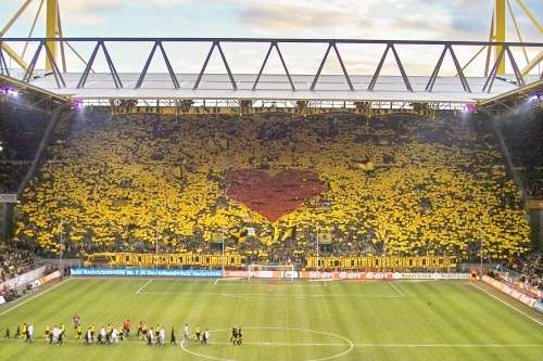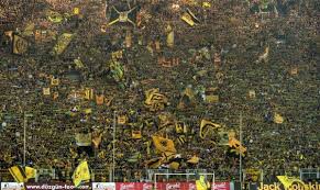 Ok, this is just a taster, or mood setter. To be fair, things calmed down, and although we got very lost, we eventually settled into our digs. Next day, into Dusseldorf. Crap place, don’t bother, but a fine breakfast was had in a lovely pub. Back to the car and up to Dortmund and the ground. Parked. Tram into town. Got Bratwurst Hot Dog. Verdict: edible. Although this from a bloke who thinks raw limpets are edible, but they are nevertheless “disappointing”.