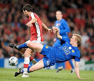 Man IOU’s case is slightly different to Chelski’s for the simple reason that Chelski do not change their system to play Arsenal, its still their tried and trusted 4-3-3, that either pushes on or sits (/gets pushed?) back. Red Nose gives up on his 4-4-2 whenever he plays Arsenal and has done for quite a while now. Fergie goes 4-5-1 with Rooney either up top on his own, or shunted out to the left wing, much to Andy Grays dismay; and workhorses like Fletcher and Park get their first starts of the season. His sole aim to is to crowd the midfield and prevent us from passing his team to death. He really does not expect to outscore us in an open game.