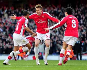 In the 2009-10 season Cesc Fabregas is proving to be an inspirational player. As the final day of March arrives, we are entertaining his DNA buddies from Barcelona in the Champions League quarter final (first leg); we are also sitting just four points behind Manchester United in the EPL, with six games to go. The Barca game finishes a 2-2 draw, with Captain Fabregas grabbing a memorable equalizer.