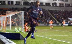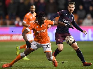 An entertaining opening to the game should have seen Arsenal over the hill and far away but Blackpool did have the odd effort or two. Eddie didn’t read his script. First he tried a near post shot when going across the keeper was the obvious option. Then he was unluckier in that A.M-N’s ball across the face of goal was just at the limit of his stretch causing a miss that looked worse than it was.