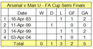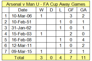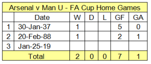 Amazingly, out of the 14 times we’ve been drawn against Man U in the FA Cup (it’ll be 15 with Friday’s game), the record stands at 7 wins each. You’ll never guess how the goals for and against stand either – yep, 19 a-piece.