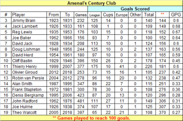 Nineteen players have achieved the feat of scoring 100 goals for the Club over the past 96 years. The players are sorted by the number of games taken to reach the 100 goal mark. Ted Drake sits proudly at number 1.