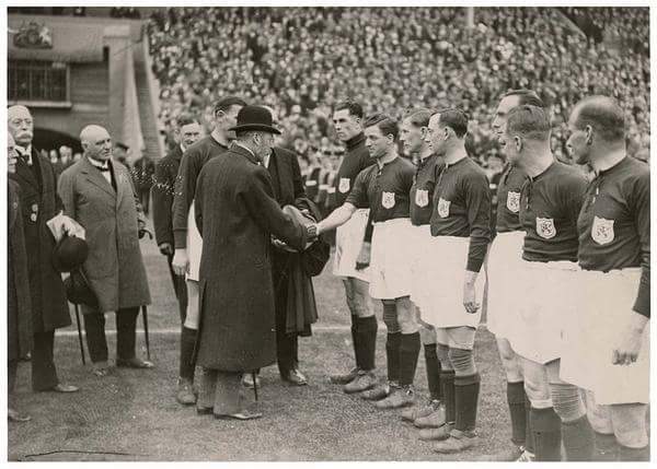 Ted made his England debut in the infamous ‘Battle of Highbury’ against Italy in 1934, the match was important enough to the Italians that Benito Mussolini had reportedly offered each player an Alfa Romeo car and the equivalent of £150 (about £15,000 in modern terms) if they beat the English team. Drake scored the third goal in an extremely violent, hate filled game which England won 3-2. Drake became a national figure his unwavering bravery being a trademark. Stan Mortensen said “Drake made hard men flinch and he is absolutely fearless’’.