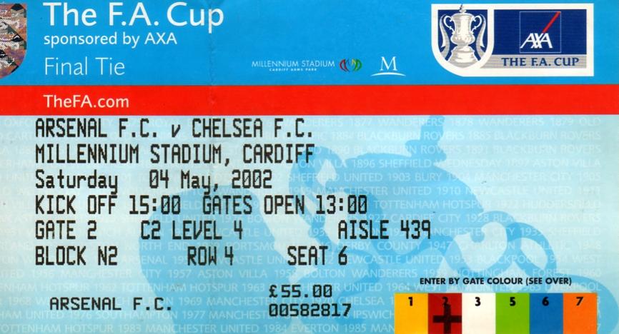 The seats were absolutely top notch in row 4 of Glanmor’s Gap in the North Stand (look it up) which effectively meant we were in the most expensive centre band of the stadium right behind the goal Arsenal attacked in the second half. The first half was fairly unmemorable, the second up there as one of the best 45 minutes of my life. Ooo Ahh Ray Parlour scored a 30 yard curler on 70 minutes. Edu warming up behind the goal, celebrated as the ball grazed Cudicini’s fingertips and then smacked the back of the net. Freddie scored ten minutes later with a 30 yard run and curling lob of exquisite beauty, having left John Terry on the deck munching grass. We saw the Freddie banner three times on the stadium big screen during the presentations and celebrations, later finding out it was on our TV recordings too!
