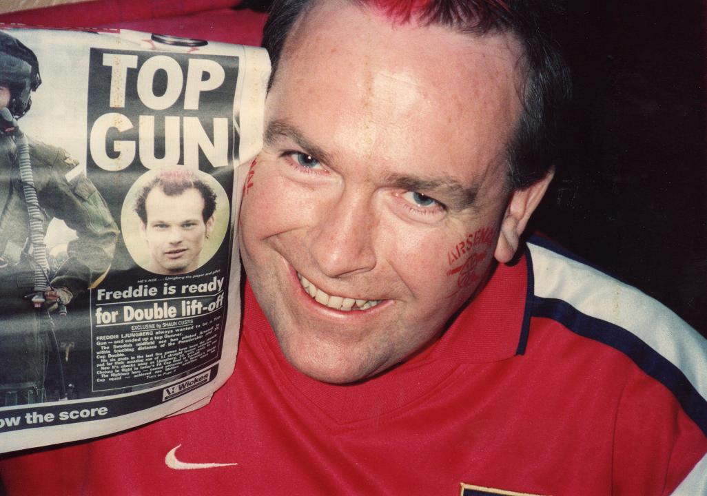 Freddie was signed by Arsenal in 1998 for £3 million, Arsenal scouts watched him for over a year and Arsenal’s manager, Arsène Wenger, took the unusual step of authorising the signing after watching him play for Sweden in their victory against England on television, without seeing him play live. Freddie scored on his debut on 20 September after coming on as a substitute against Manchester United. He endeared himself to Arsenal supporters by having a bright red stripe in his hair. (A popular chant spawned from this to the tune of “Can’t Take My Eyes Off You” by Frankie Valli and the Four Seasons: “We love you Freddie, because you’ve got red hair, we love you Freddie because you’re everywhere, we love you Freddie, you’re Arsenal through and through” Later when he shaved his head this was updated to “We love you Freddie, because you’ve got no hair”).